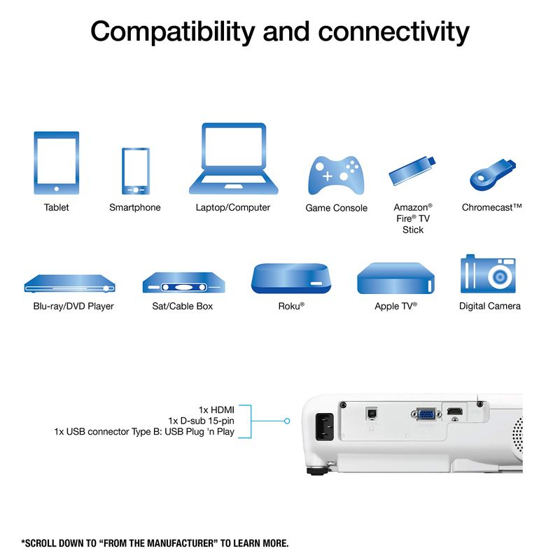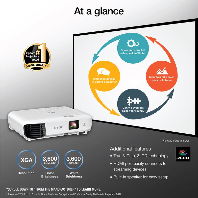 TV Y VIDEOPROYECTORESEpson EX3280 Proyector 3LCD XGA de 3 chips, brillo de color de 3,600 lúmenes, brillo blanco de 3,600