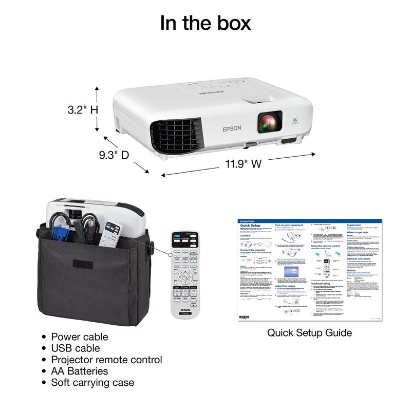 Epson EX3280 Proyector 3LCD XGA de 3 chips, brillo de color de 3,600 lúmenes, brillo blanco de 3,600