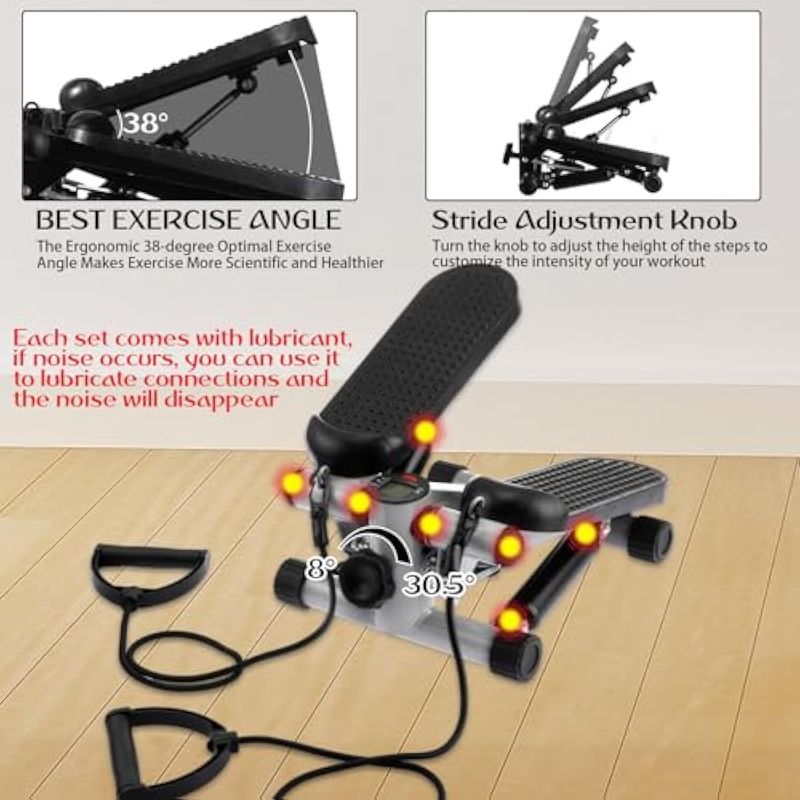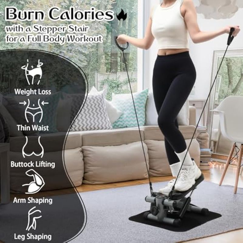 BELLEZA Y SALUDFITNESSEQUIPOS DE GIMNASIOEscalera escalonada con capacidad de carga de 300 libras, con monitor LCD y bandas de resistencia
