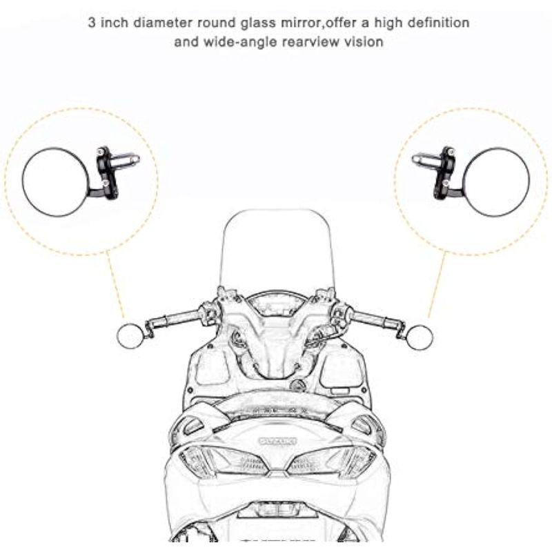 RODADOSMOTOSEspejos universales para motocicleta, espejo lateral redondo plegable de 3 pulgadas para Honda,