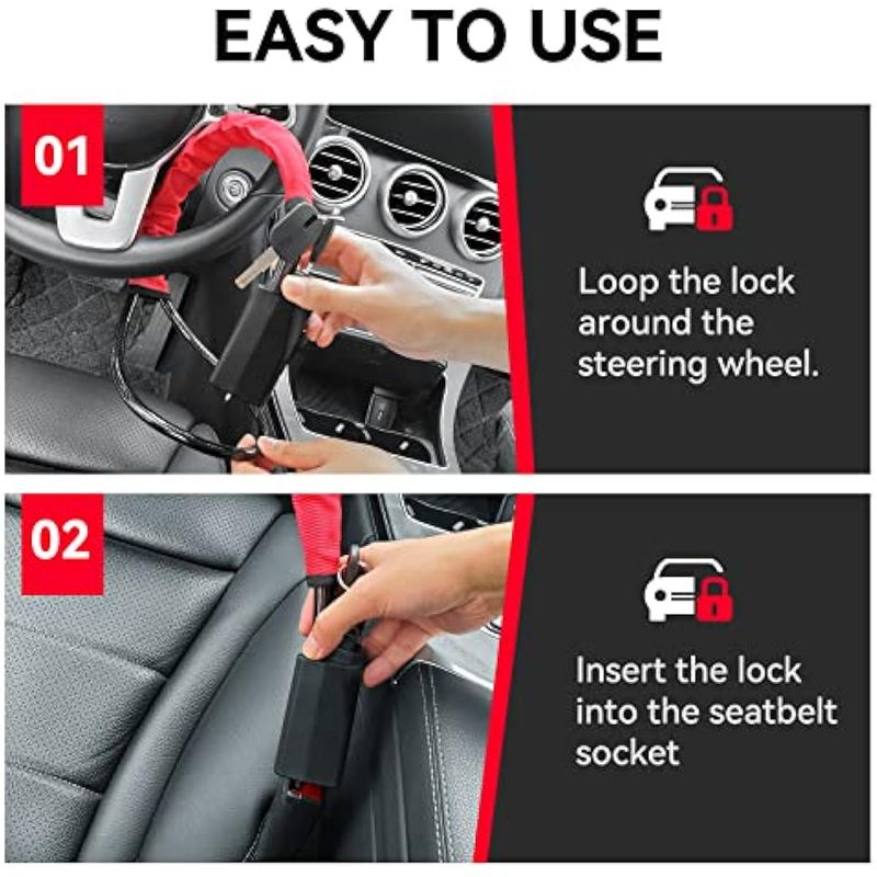 Esploratori Cerradura antirrobo para volante y cinturón de seguridad con llaves para seguridad del