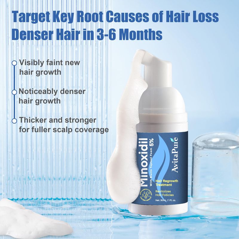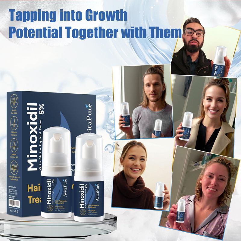 Espuma de minoxidil Yuaben para hombres y mujeres: 5% infundida con biotina, extra fuerza,