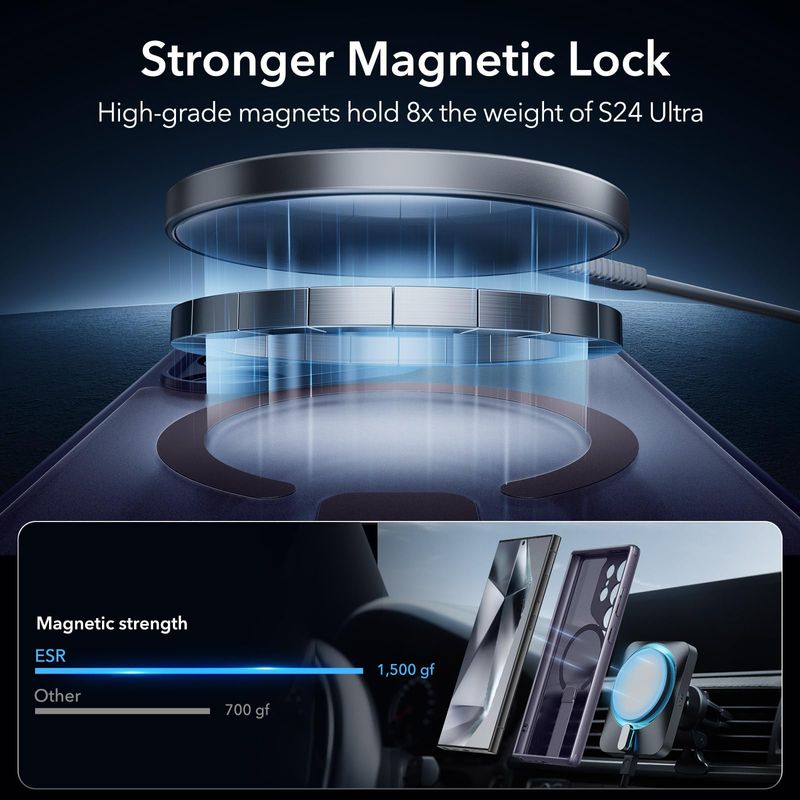 Stronger Magnetic Lock: powerful built-in magnets with 1,500 g of holding force enable faster, easier place-and-go wireless charging and a secure lock on any HaloLock or MagSafe accessory