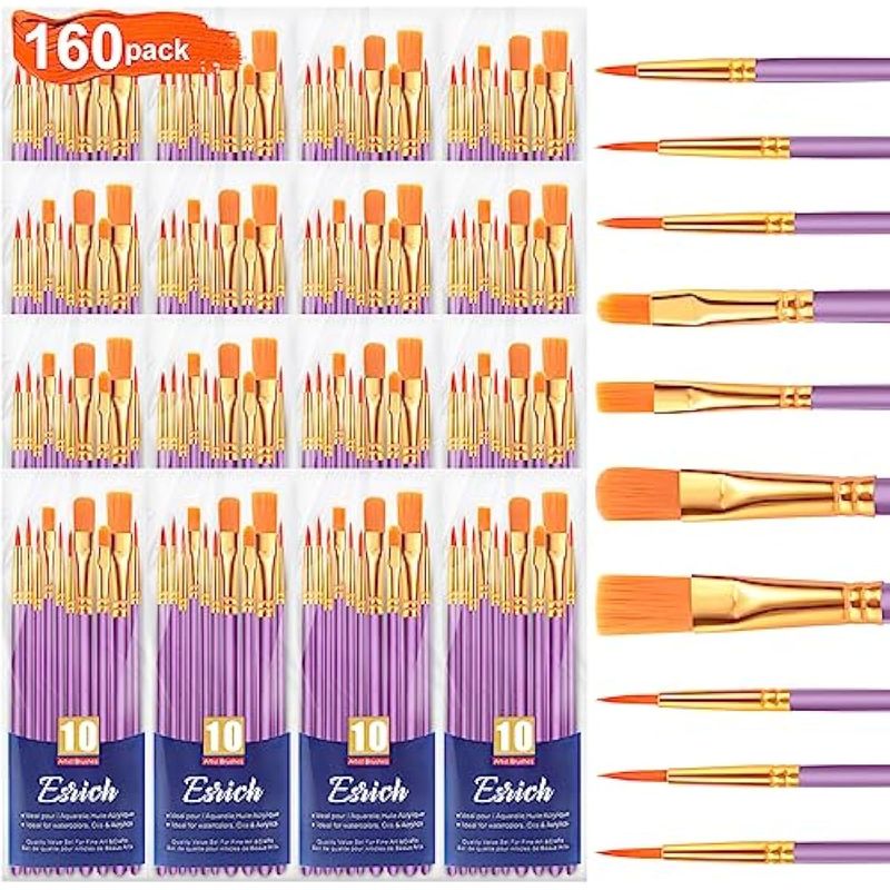 ESRICH Juego de pinceles de pintura acrílica, 16 paquetes/160 piezas, adecuado para acrílico, óleo,