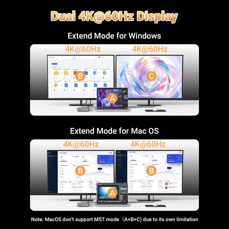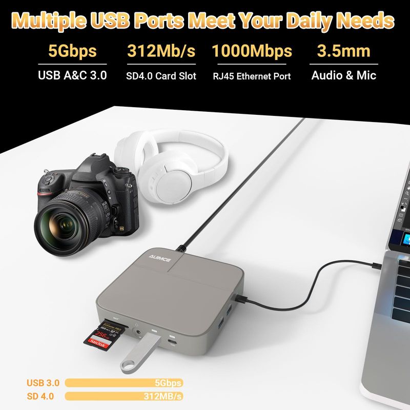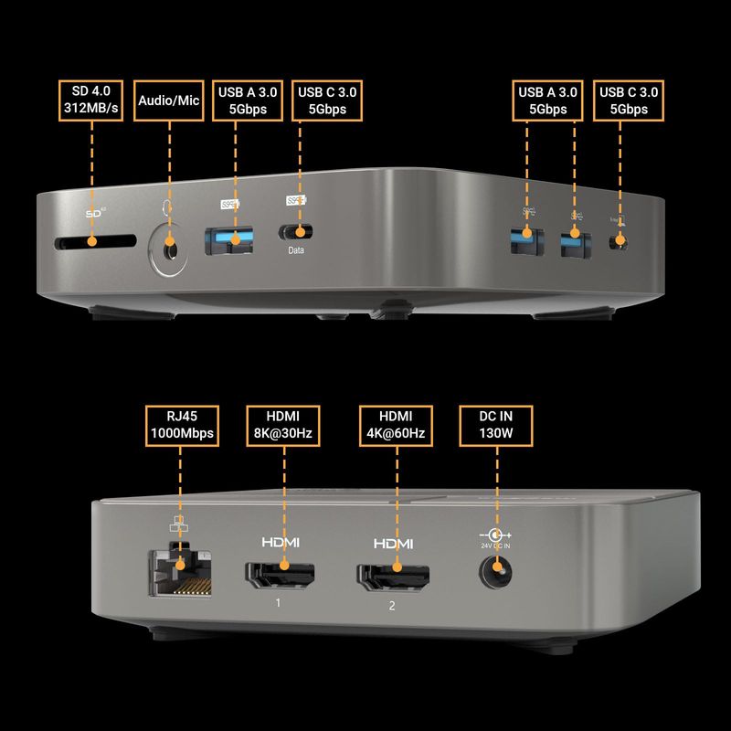 INFORMÁTICANOTEBOOKSEstación de acoplamiento dual USB C 4K Dual Monitor 2 HDMI con fuente de alimentación de 130 W, solo