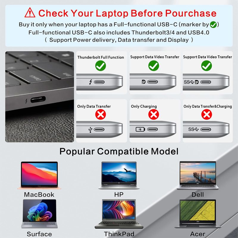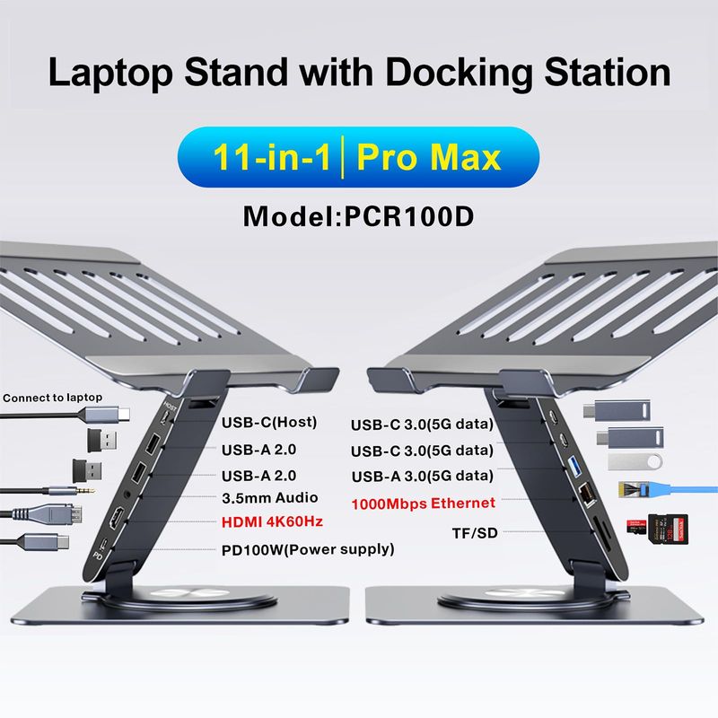 Estación de acoplamiento para laptop MacBook Pro/Air/Dell/HP/Surface HC 11 en 1 USB C Hub giratorio