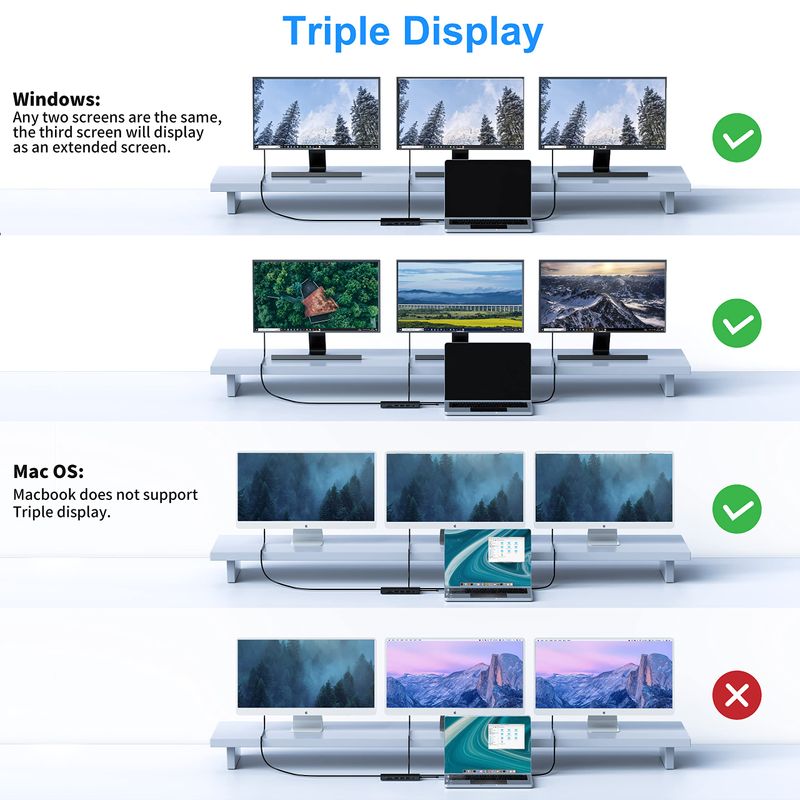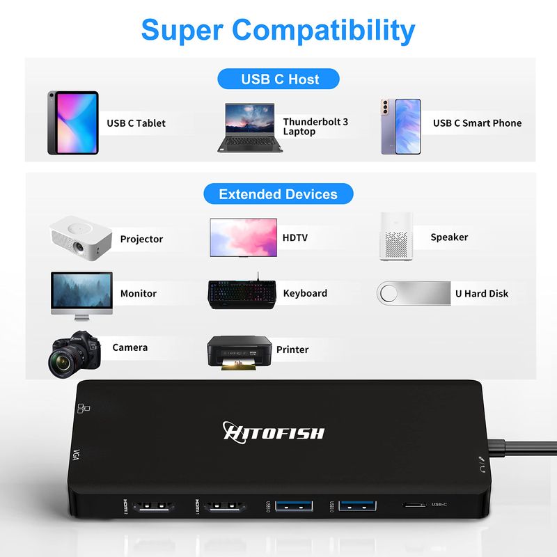 Estación de acoplamiento USB C para laptop, adaptador multipuerto 14 en 1 tipo C con 3 monitores