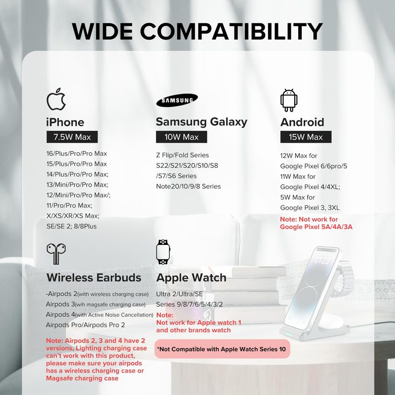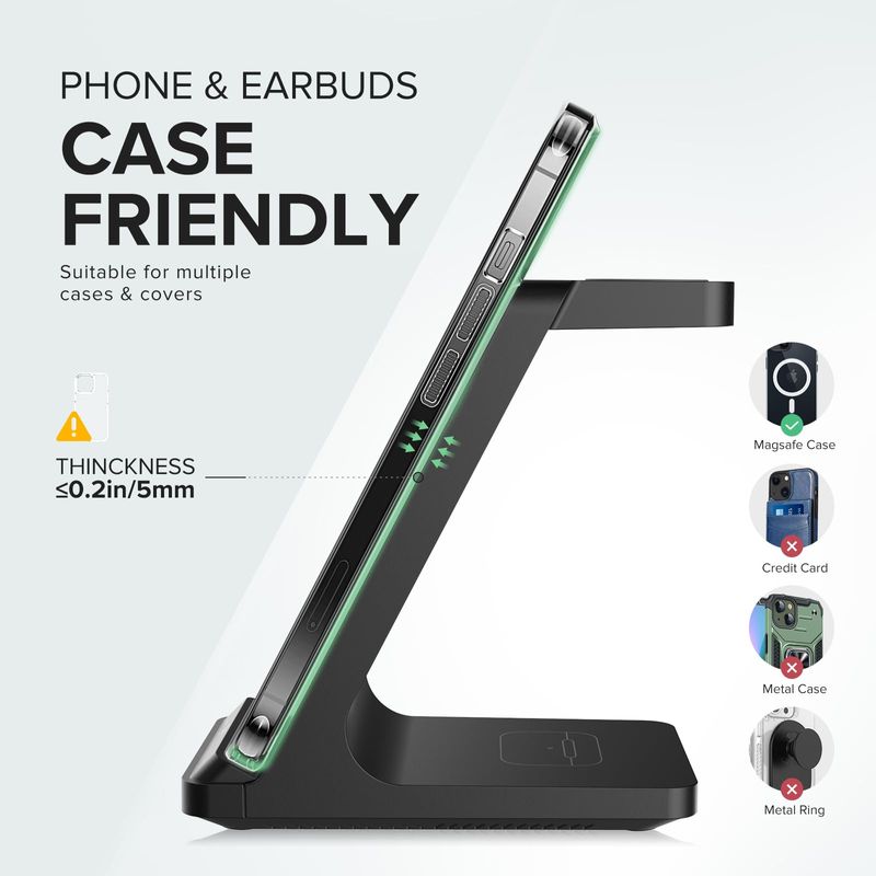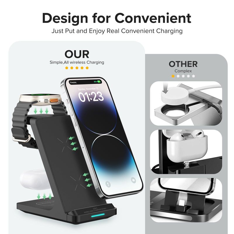Estación de carga inalámbrica, 3 en 1, soporte de cargador inalámbrico rápido para múltiples