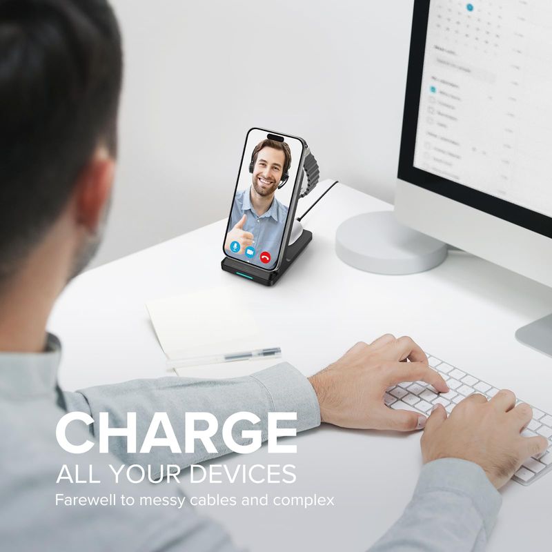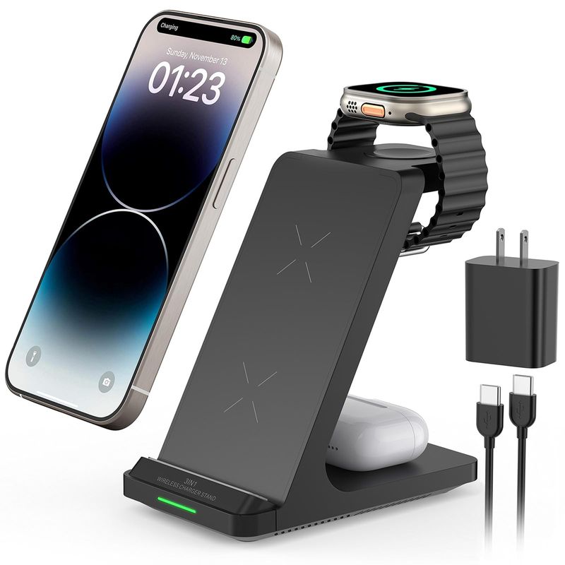 TELEFONIAACCESORIOSCARGADORESEstación de carga inalámbrica, 3 en 1, soporte de cargador inalámbrico rápido para múltiples