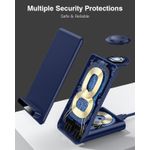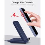 Con sobrecorriente, sobretensión, sobretemperatura, protección contra cortocircuitos y función de detección de objetos extraños. Equipado con almohadillas de silicona antideslizantes, protege completamente tus dispositivos de arañazos y deslizamientos mientras se carga. Además, el soporte de carga inalámbrico puede funcionar con la mayoría de las fundas de hasta 0.157 in, sin necesidad de quitar la funda de tu teléfono antes de cargar, pero retira todos los accesorios metálicos o magnéticos que interfieran con la carga inalámbrica.