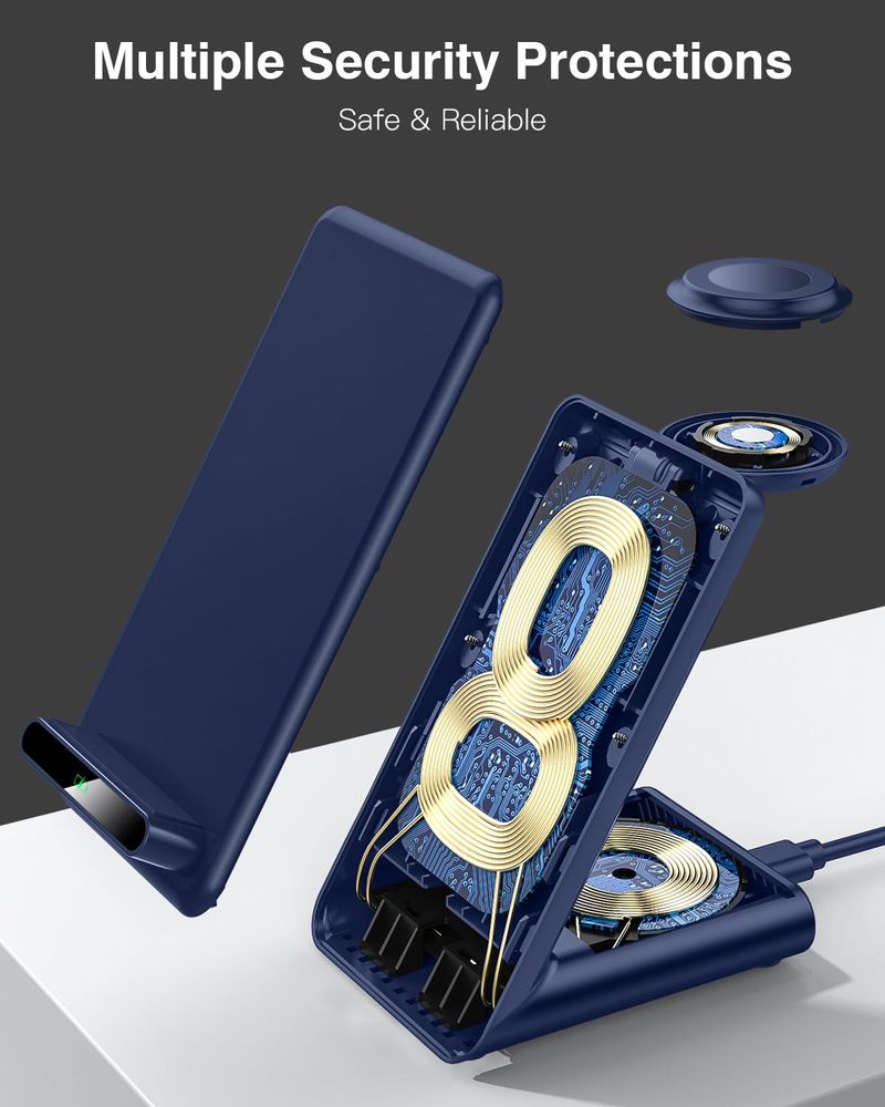 Este cargador 3 en 1 ofrece una manera inteligente de ahorrar tiempo y espacio, te permite colocar tu dispositivo en la estación de carga fácilmente. Con una base de 2.7 x 3.5 pulgadas, su diseño pequeño y compacto ocupa menos espacio y te deja más espacio en tu mesita de noche, mesa o espacio de trabajo. 17.