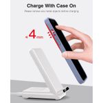 Con sobrecorriente, sobretensión, sobretemperatura, protección contra cortocircuitos y función de detección de objetos extraños. Equipado con almohadillas de silicona antideslizantes, protege completamente tus dispositivos de arañazos y deslizamientos mientras se carga. Además, el soporte de carga inalámbrico puede funcionar con la mayoría de las fundas de hasta 0.157 in, sin necesidad de quitar la funda de tu teléfono antes de cargar, pero retira todos los accesorios metálicos o magnéticos que interfieran con la carga inalámbrica.