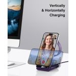 El soporte de carga está diseñado con dos bobinas integradas para un área de carga más amplia, por lo que no tienes que preocuparte por la colocación precisa, suficiente espacio de carga te permite cargar en modo vertical y horizontal, lo que te proporciona un ángulo de visión cómodo para ver videos, escuchar música, Face Time, enviar mensajes y desbloquear tu teléfono. con Face ID mientras se carga ing.