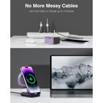 Este cargador 3 en 1 ofrece una manera inteligente de ahorrar tiempo y espacio, te permite colocar tu dispositivo en la estación de carga fácilmente. Con una base de 2.7 x 3.5 pulgadas, su diseño pequeño y compacto ocupa menos espacio y te deja más espacio en tu mesita de noche, mesa o espacio de trabajo. 17.