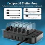 Estación de carga para múltiples dispositivos, estación de carga de 60 W y 6 puertos con 7 cables de
