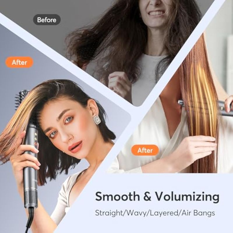 [Tecnología iónica mejorada de 300 millones de personas, sin encrespamiento] cepillos para el cabello de aire caliente aumentan la producción de 20 millones a 300 millones de iones negativos, esta herramienta de peinado 5 en 1 suaviza eficazmente el encrespamiento y elimina la estática para un cabello más brillante. Evita la vergüenza de que el cabello se pegue a tu suéter y luce más fresco y seguro.