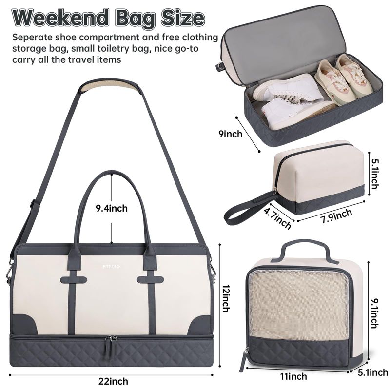 ETRONIK BOLSA DE VIAJE PARA MUJER, BOLSA DE VIAJE GRANDE CON COMPARTIMENTO PARA ZAPATOS, BOLSA DE MANO, BEIGE, VIAJES