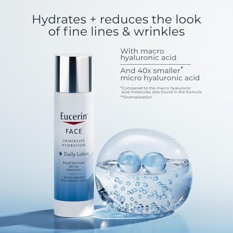 Eucerin Hidratación facial diaria hidratante facial de amplio espectro SPF 30, hidratante diario con