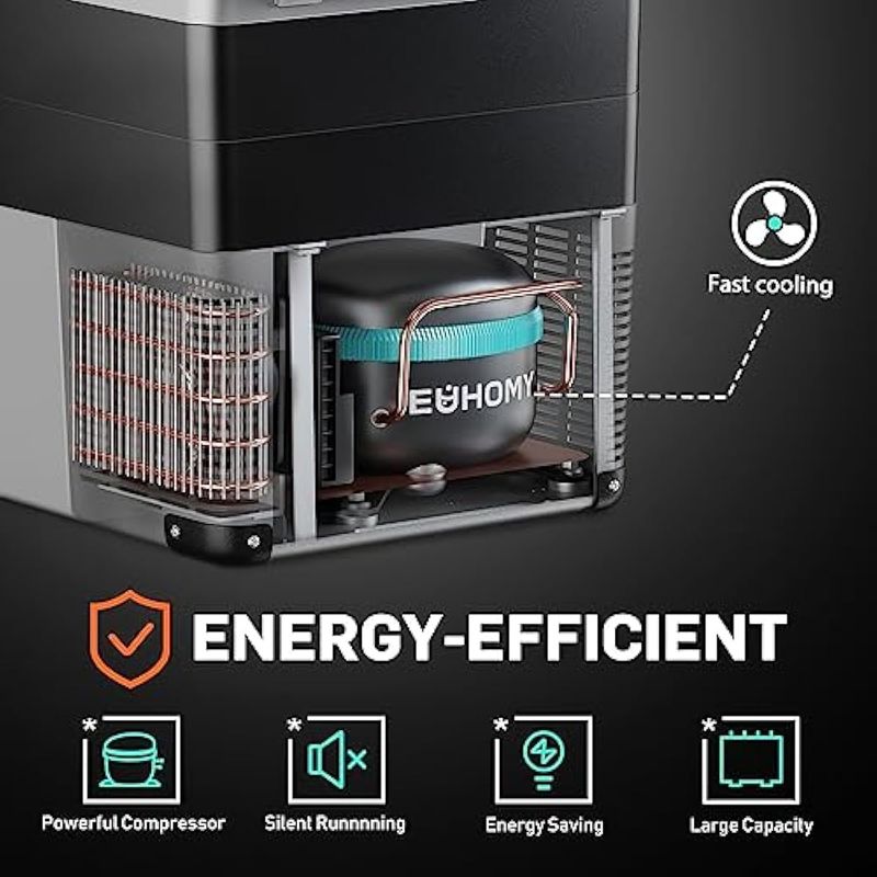 Euhomy - Refrigerador de automóvil, 55L (59 qt), refrigerador RV con 12/24 V CC y 120-240 V CA,