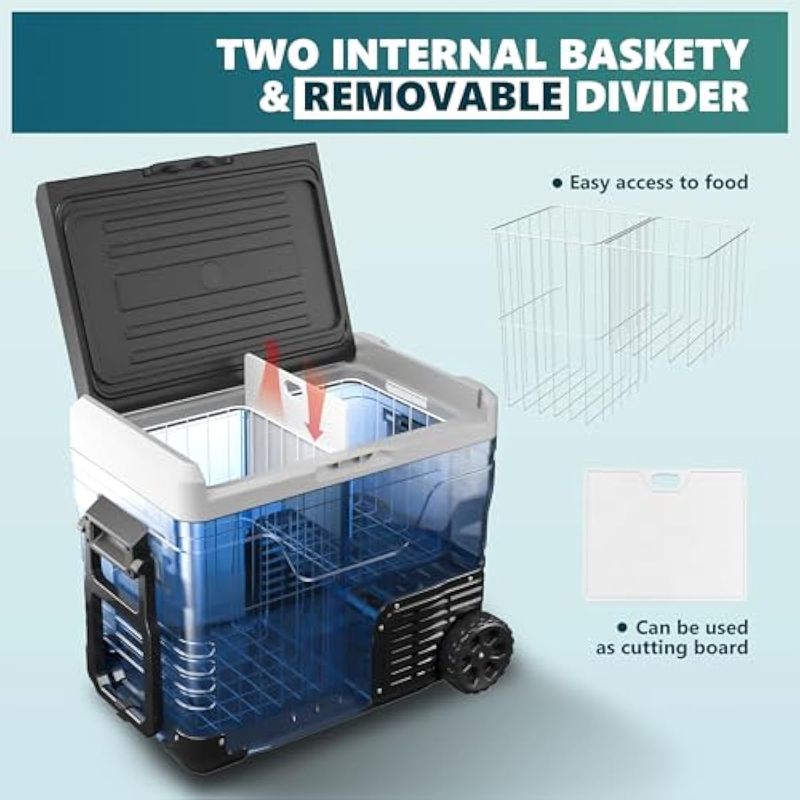 EUHOMY Refrigerador de 12 voltios, enfriador eléctrico de 53 cuartos (50 L), congelador portátil de
