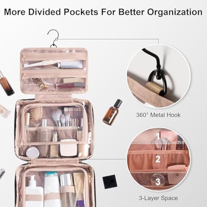 Everfun Neceser de viaje colgante para mujer, bolsa organizadora grande de cosméticos con 4
