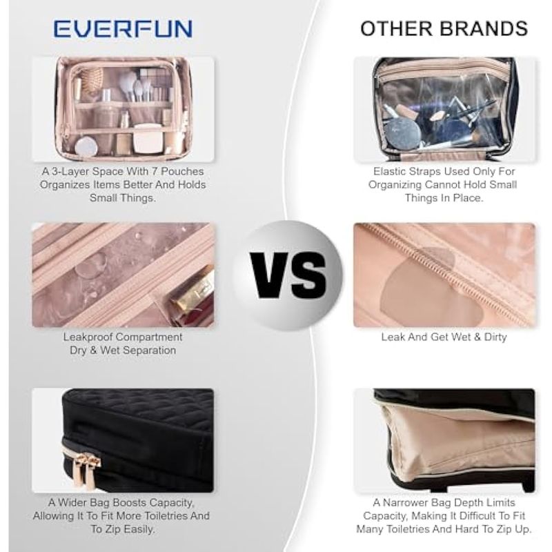 BELLEZA Y SALUDBELLEZA Y CUIDADO CORPORALMAQUILLAJEEverfun Neceser de viaje colgante para mujer, bolsa organizadora grande de cosméticos con 4