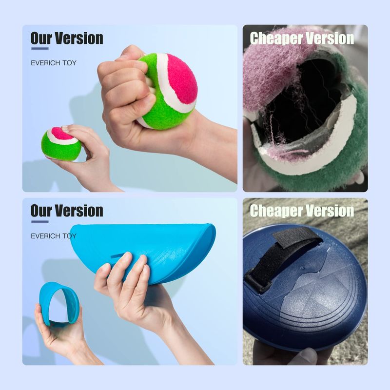 Pelota más suave y de alta calidad: las pelotas de captura de mala calidad son muy duras y sin elasticidad, las nuestras son mucho más fuertes y suaves. El set incluye 2 pelotas y 2 raquetas, 1 exquisita pelota de almacenamiento.