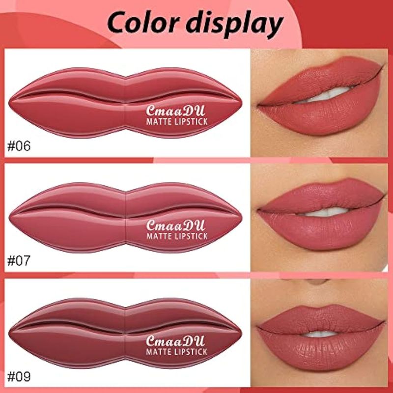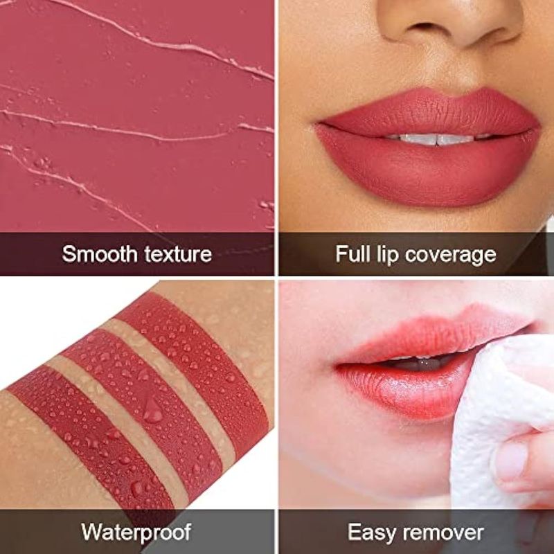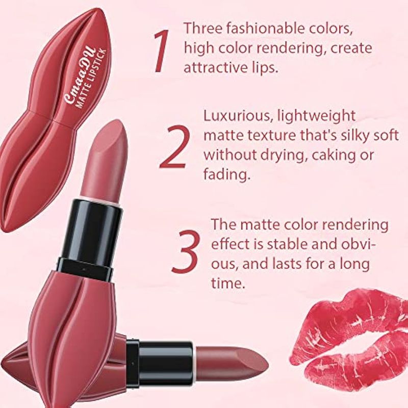 BELLEZA Y SALUDBELLEZA Y CUIDADO CORPORALMAQUILLAJEevpct Juego de 3 lápices labiales de terciopelo mate, color rosa y marrón malva, de larga duración,