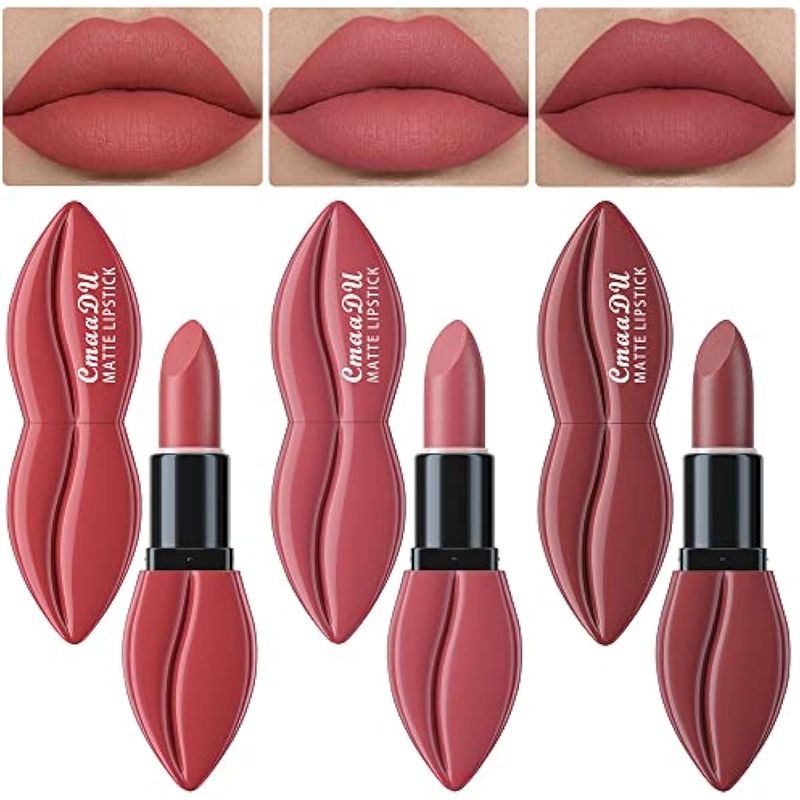 evpct Juego de 3 lápices labiales de terciopelo mate, color rosa y marrón malva, de larga duración,