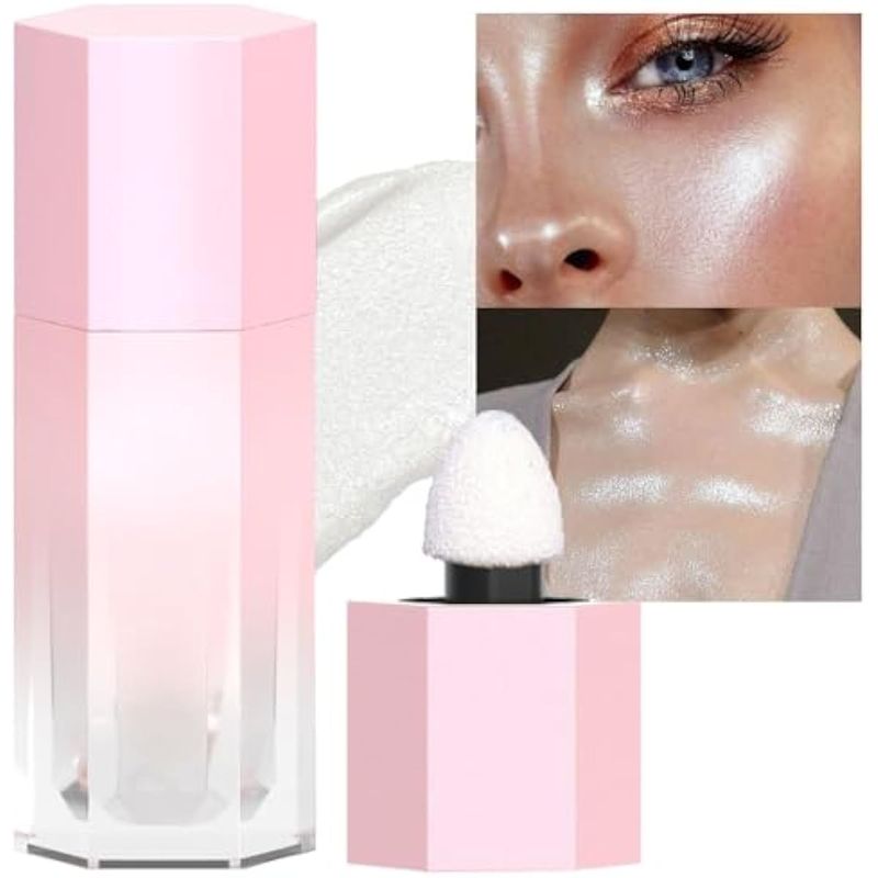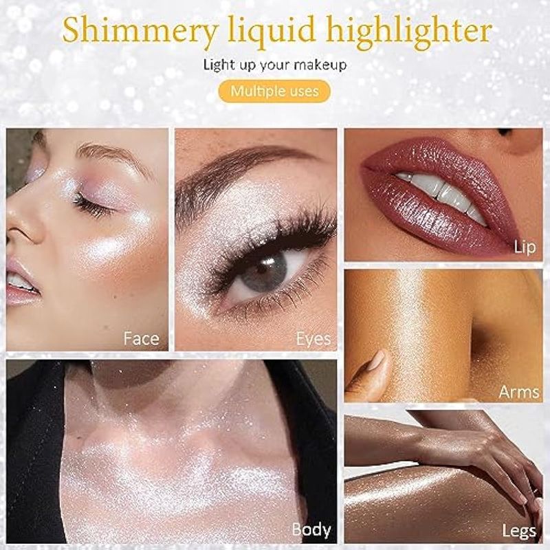 evpct Resaltador facial blanco plateado líquido de maquillaje para cara, perla blanca cara brillante