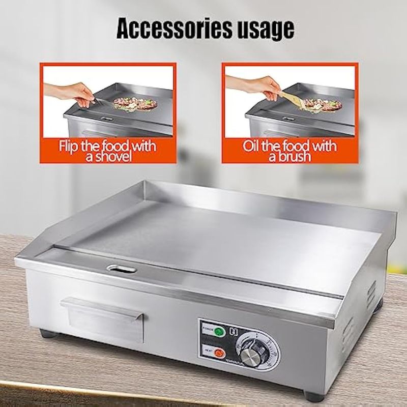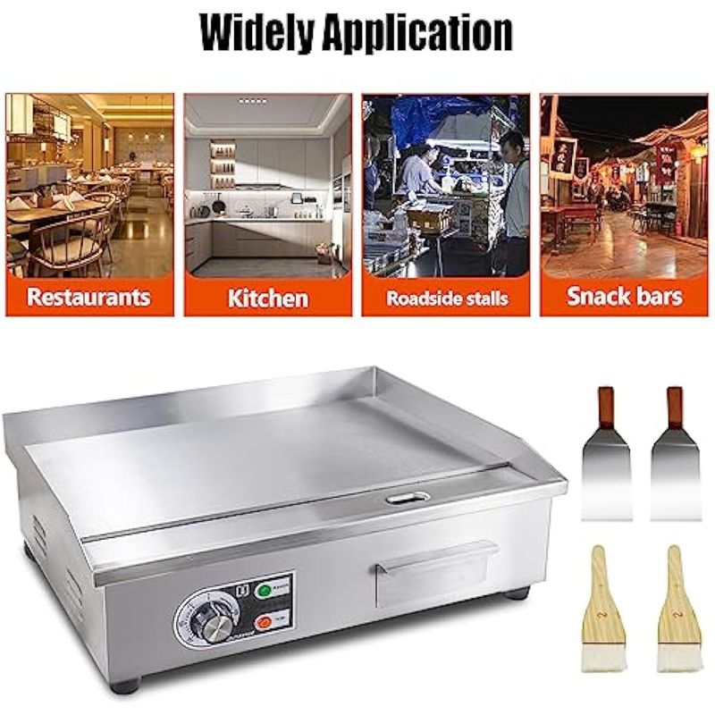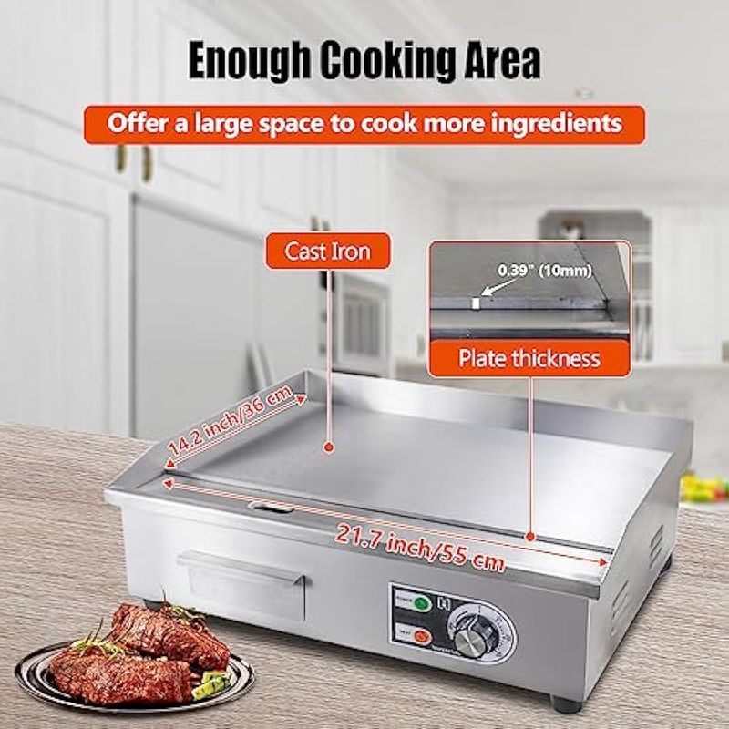 ExGizmo Plancha eléctrica comercial de 14 pulgadas, plancha eléctrica de encimera plana, parrilla