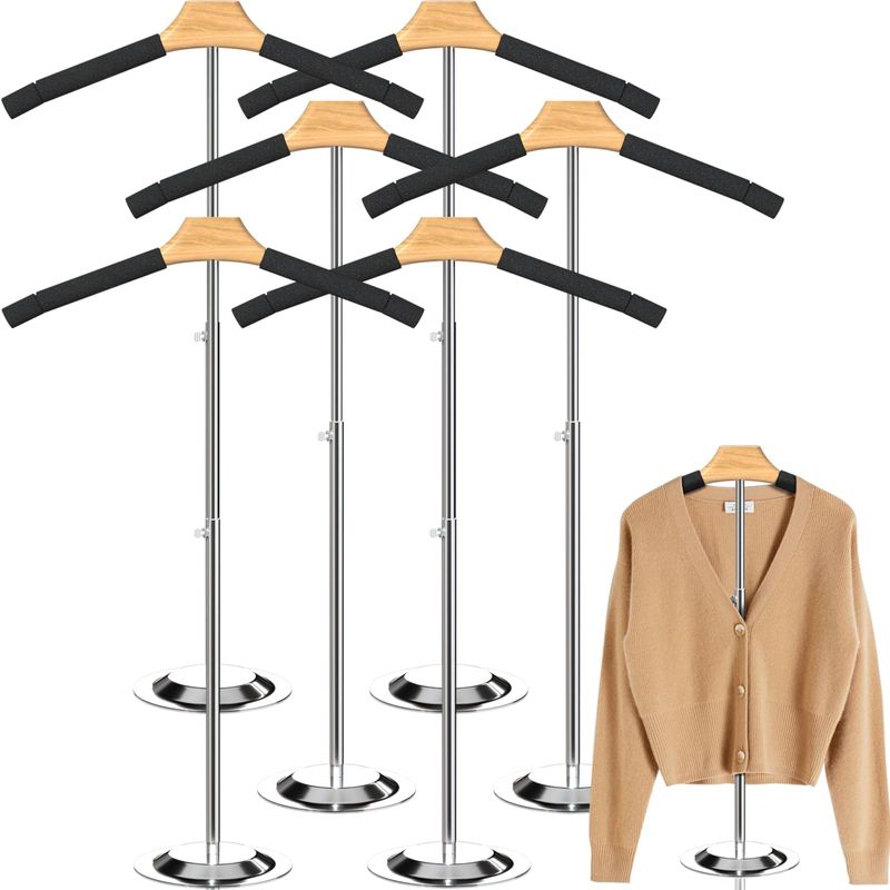 Altura ajustable: la altura de nuestros estantes de exhibición para camisetas es de aproximadamente 18.3 a 31.1 pulgadas, puedes ajustar la pantalla de la ropa de acuerdo a tu altura y la altura de tu ropa, conveniente para tu uso diario.