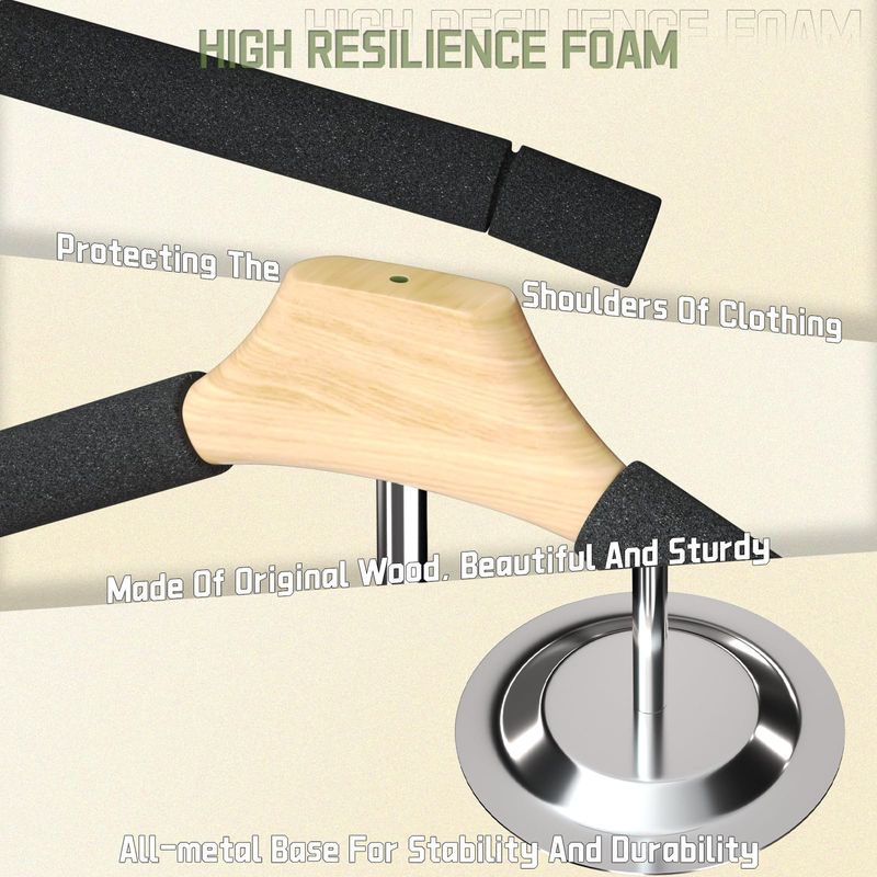 Acero inoxidable de alta calidad: nuestra exhibición de camisas está hecha de material de metal, las perchas negras están hechas de espuma, soportes de metal y madera, estructura resistente y buen soporte, suficiente para hacer ropa y evitar la deformación de la ropa.
