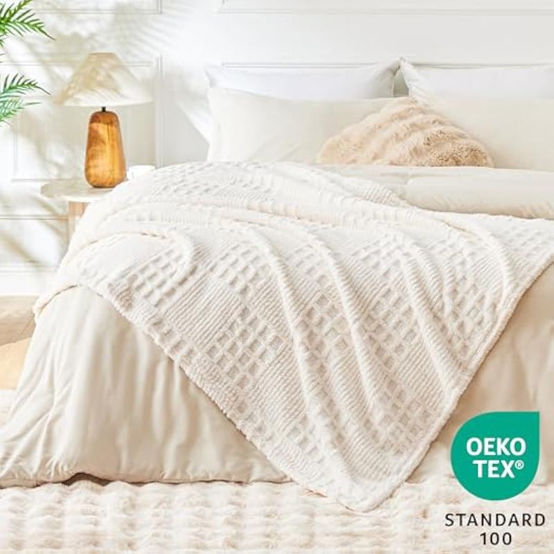 HOGARBLANQUERIACUBRECAMAEXQ Home Manta de forro polar para sofá o cama, manta decorativa de imitación 3D de conchas de