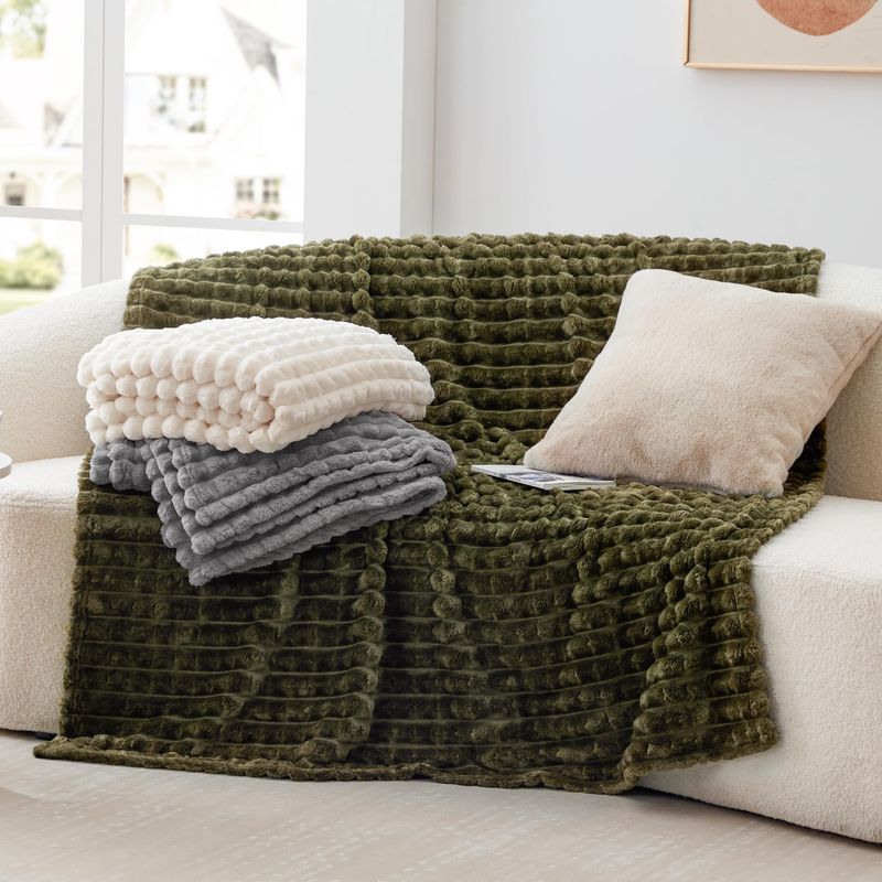 HOGARBLANQUERIACUBRECAMAEXQ Home Manta de forro polar para sofá o cama, manta decorativa de imitación 3D de conchas de