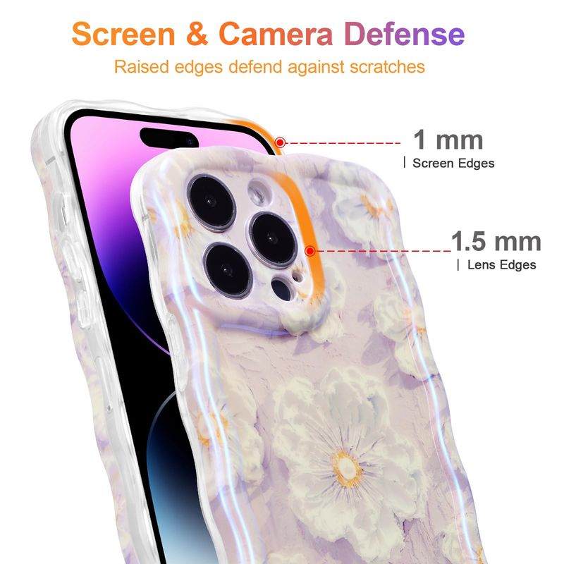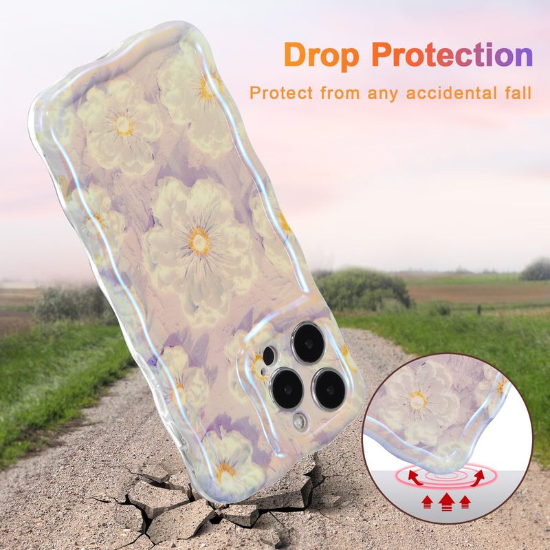 EYZUTAK FUNDA PARA IPHONE 13 PRO MAX, COLORIDA PINTURA AL óLEO RETRO IMPRESA FLOR PATRóN BRILLANTE LáSER LINDO BORDE ONDULADO RIZADO EXQUISITA CUBIERTA DEL TELéFONO ELEGANTE DURADERA TPU FUNDA PROTECTORA PARA NIñAS Y MUJERES, VERDE