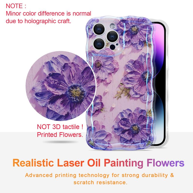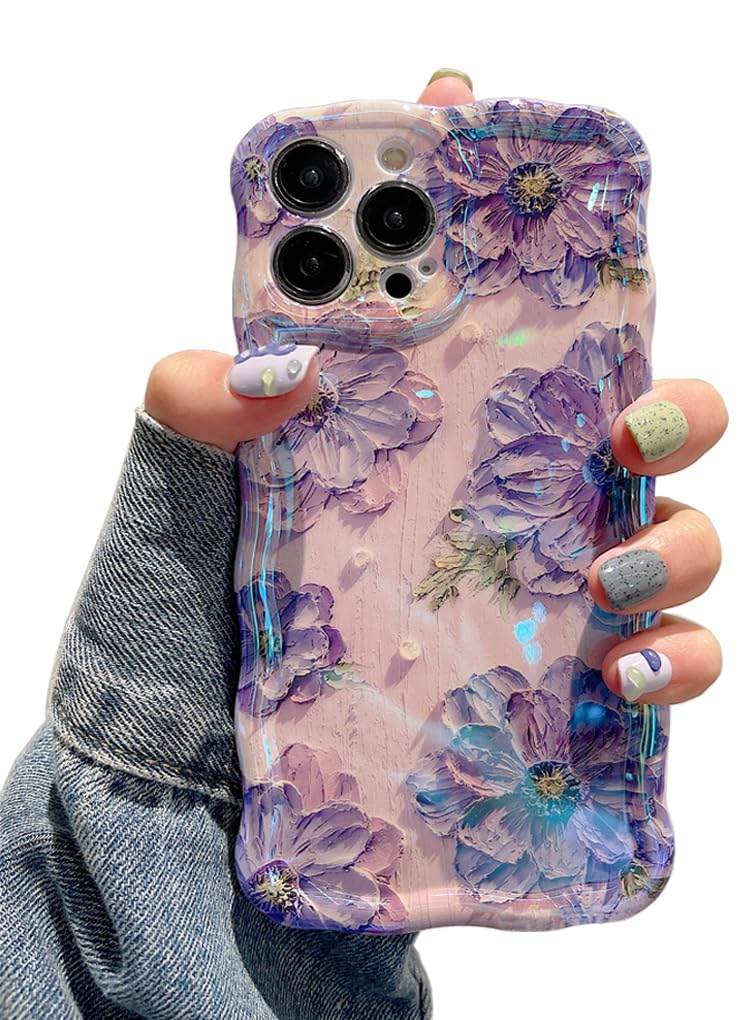 EYZUTAK Funda para iPhone 13 Pro Max, colorida pintura al óleo retro impresa flor patrón brillante