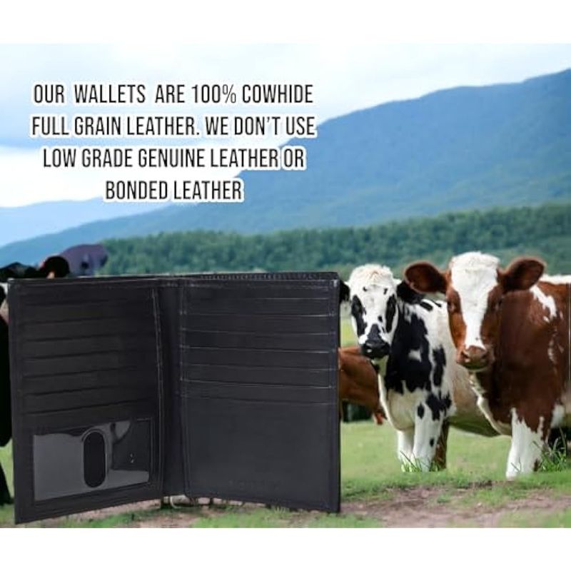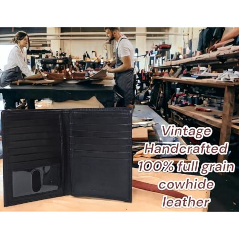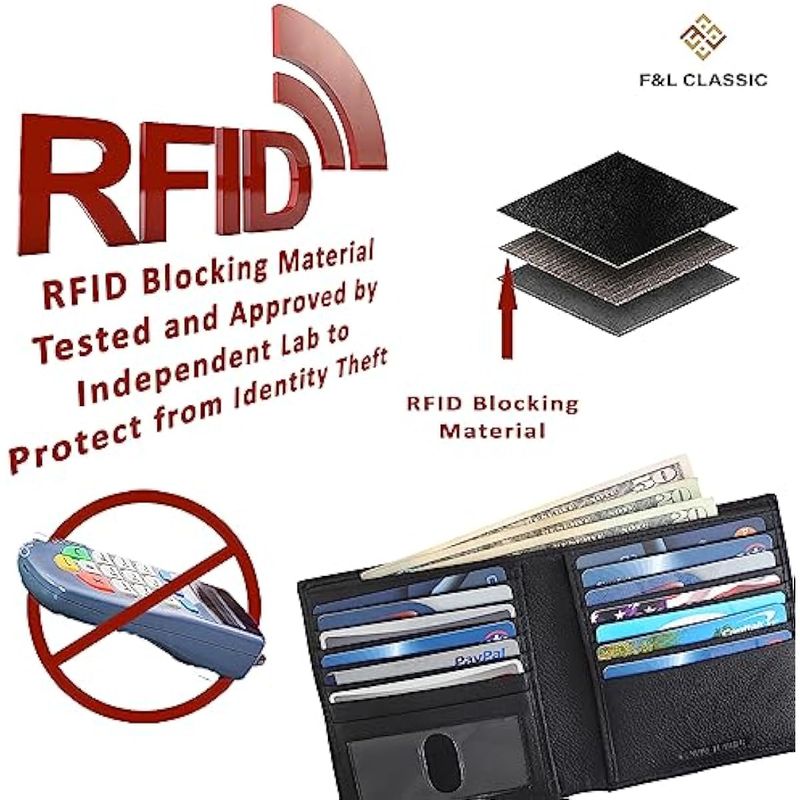 F&L CLASSIC Cartera de piel biplegable con bloqueo RFID para hombre, 13 ranuras para tarjetas de