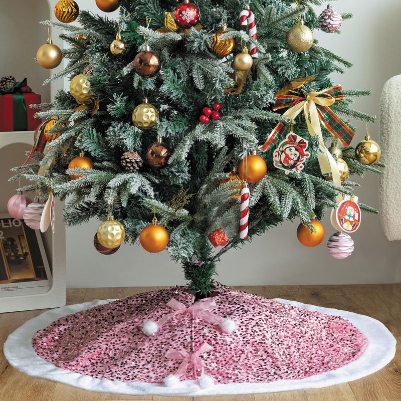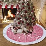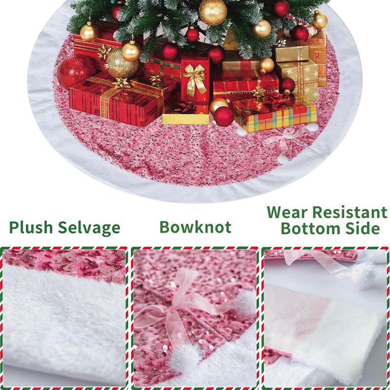 HOGARBAZARDECORACIONFalda de árbol de Navidad, color rosa brillante con piel sintética, decoración de Navidad, base de