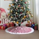 Falda de árbol de Navidad, color rosa brillante con piel sintética, decoración de Navidad, base de