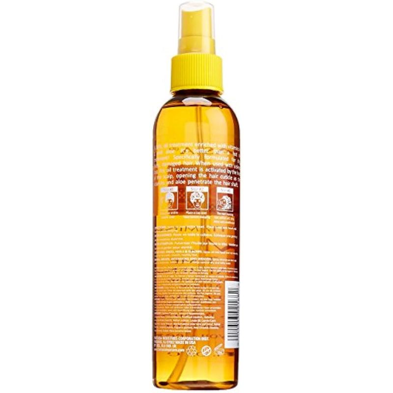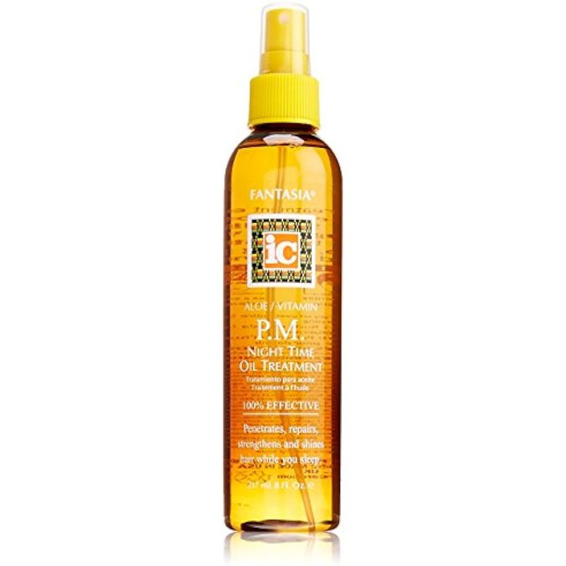 Fantasia PM Night Time Oil Treatment for Hair, un tratamiento ligero y aceitoso enriquecido con vitaminas A, E y aloe. ¡Es mejor que un tratamiento de aceite caliente! Formulado específicamente para cabello seco, encrespado y dañado. Cuando se usa con un gorro para dormir, este tratamiento de aceite se activa por el calor del cuero cabelludo, abriendo la cutícula del cabello a medida que las vitaminas y el aloe penetran en el tallo del cabello.