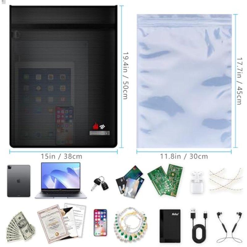FARADAY - BOLSAS PARA TELéFONOS, COMPUTADORAS PORTáTILES, TABLETAS Y LLAVES DE COCHE, PROTECTOR DE LLAVERO FARADAY, 20 X 15 PULGADAS, JAULA FARADAY GRANDE A PRUEBA DE FUEGO E IMPERMEABLE,