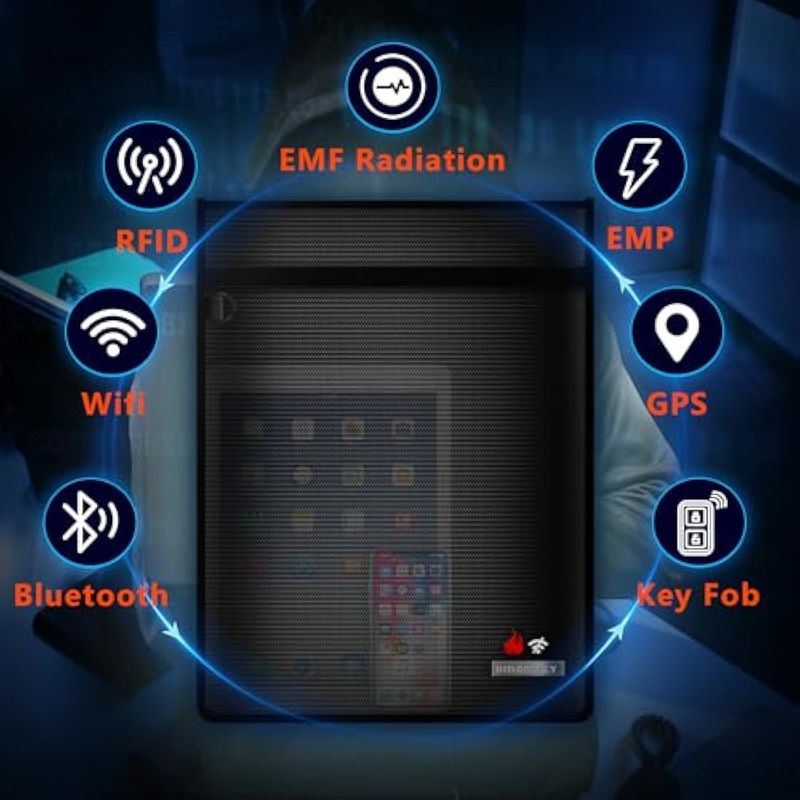 Protección de señal perfecta: el protector de llavero HIDAMAZY Faraday está hecho de materiales de alta tecnología de alta tecnología, protege los dispositivos de una amplia variedad de señales incluyendo EMP, EMF, NFC, RFID, radio FM, GPS, celular, Bluetooth, 5G, WiFi 2.4 y 5GHz, y señales de llave de automóvil, entre otros. Evita la intrusión sin llave del automóvil y protege la seguridad del automóvil. El blindaje de grado militar evita la piratería de dispositivos, el seguimiento, el espionaje y la corrupción en la cadena de custodia.