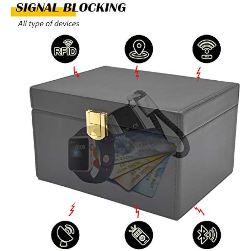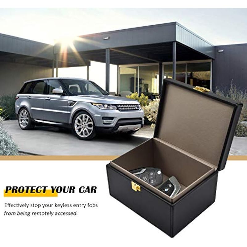 Detén el robo de tu automóvil sin llave ahora: nuestra caja de prevención de robo de automóvil premium está forrada con un material de alta calidad que evita que cualquier señal salga de la caja. Simplemente coloca tu llave en la caja cerrada de Faraday y evitarás que la señal de tu llave de automóvil sea accesible por los ladrones. Protege tu automóvil en todo momento