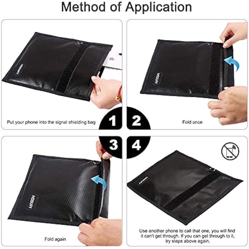 ???Duradera, plegable, fácil de transportar?La jaula Faraday es portátil y ligera, muy fácil de llevar, las bolsas se pueden plegar fácilmente en una caja Faraday sin deformación ni daños. Ya sea en casa o en la oficina, es la mejor opción para mantener tu teléfono seguro. Es muy conveniente llevar la jaula Faraday para ir al trabajo, ir de compras o viaje de negocios