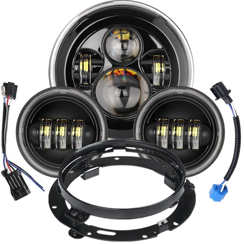 RODADOSHERRAMIENTAS PARA AUTOFaros LED de motocicleta de 7 pulgadas + luces antiniebla LED de 4.5 pulgadas para Harley Davidson