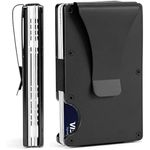 FDKOBE CARTERAS MINIMALISTAS PARA HOMBRES - CARTERA DE METAL CON CLIP PARA DINERO - TARJETERO DE ALUMINIO, NEGRO -, MINIMALISTA