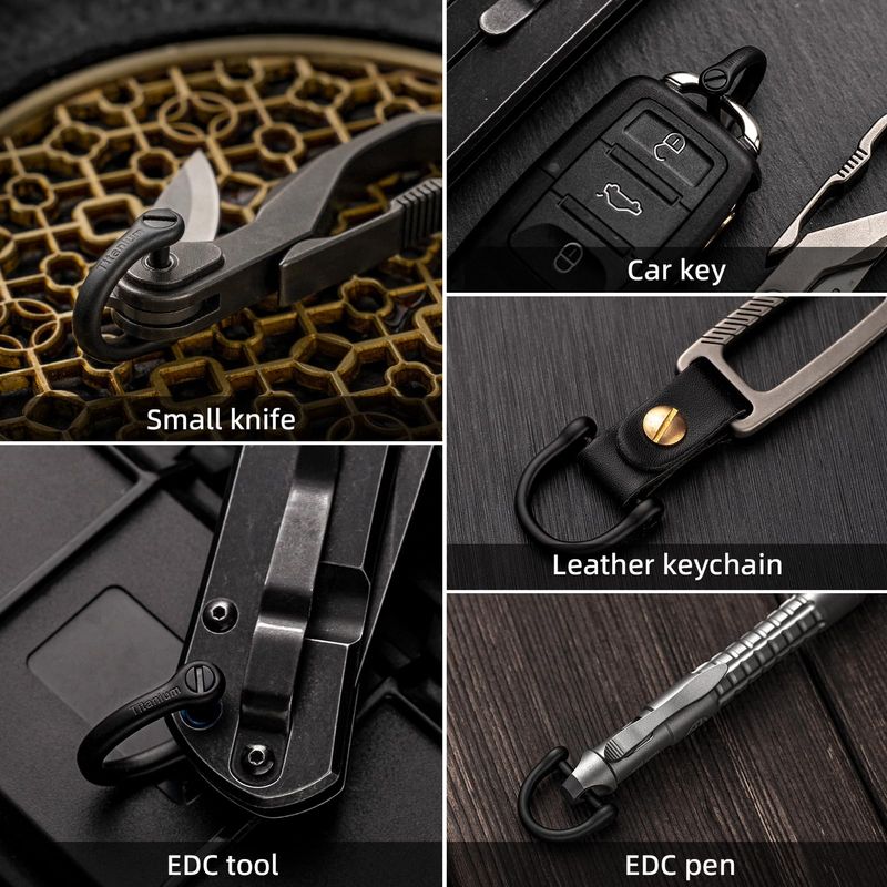 FEGVE Llavero de titanio en D con destornillador, llavero de automóvil para hombre, grillete y