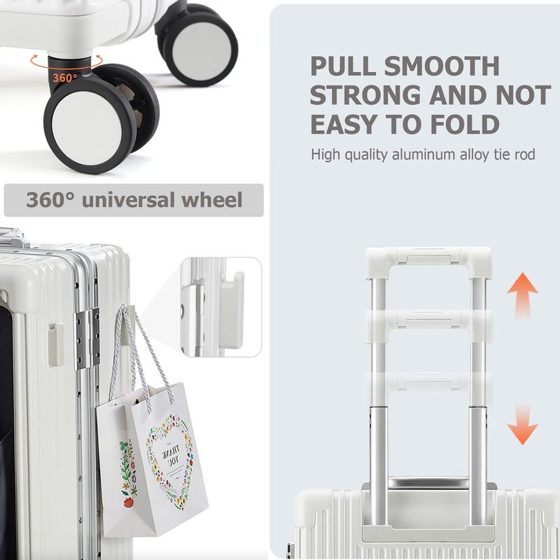 Bloqueo TSA y rueda antiruido: los cierres TSA montados mejoran la seguridad extremamente, asegurando que solo tú puedes acceder fácilmente a tus pertenencias cuando viajas; 4 ruedas giratorias multidireccionales para una movilidad sin esfuerzo, ligeras, pueden reducir fácilmente el ruido cuando se mueve.