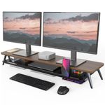 Fenge Soporte para monitor doble, soporte elevador para 2 monitores, estante de escritorio de madera